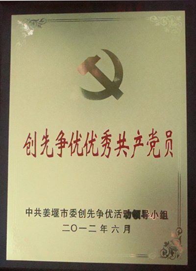 在“创先争优”活动中,集团公司山东(临时)党支部书记全文林同志被中共姜堰市委创先争优活动领导小组授予姜堰市“创先争优优秀共产党员”称号。