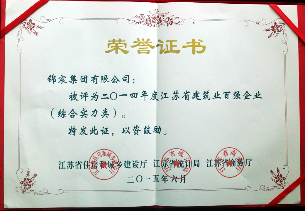 6月11日,江苏省政府召开建筑业创新发展暨2014年度“百强企业”发布会,会议回顾总结了2014年全省建筑业发展工作,发布2014年度全省建筑业“百强企业”名单,部署推进建筑业创新发展,并向受表彰的全省建筑业综合实力、建筑装饰装修、建筑钢结构、建筑安装、基础设施、建筑外经六大类共100家企业颁发了奖牌。HJC黄金城平台集团榜上有名。