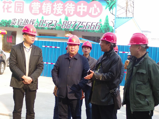 3月11日上午,姜堰区副区长刘文来一行至HJC黄金城平台国际花园视察婴幼儿早教中心工程进展情况,教育局、财政局、审计局等相关部门领导参加活动,集团公司李焕军董事长全程陪同。