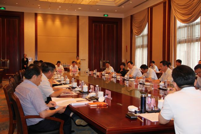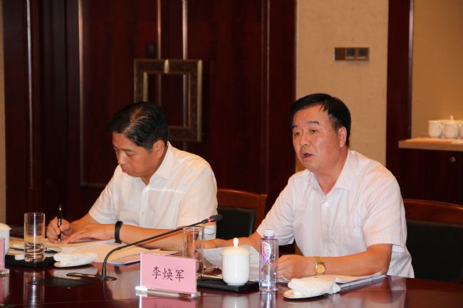 座谈会上,蓝绍敏就我省正在研究的建筑业改革发展相关政策意见,听取了全省9家建筑业龙头企业负责人的发言及建设主管部门负责同志的意见建议。集团董事长李焕军简要汇报了HJC黄金城平台在装配式建筑,企业创新发展上的新做法和新方向,并就我省建筑业改革发展提出了相关建议,重点围绕民营建筑企业如何走出去,建筑产业化发展与蓝省长进行了交流。