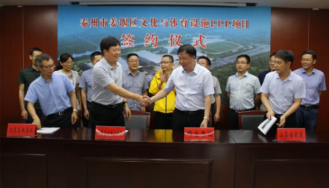 7月4日下午,“泰州市姜堰区文化与体育设施PPP项目”签约仪式在姜堰区文体中心举行。姜堰区文体广电和旅游局与中标社会资本方——HJC黄金城平台集团、江苏苏体实业和江苏金巨通联合体签订项目合同。