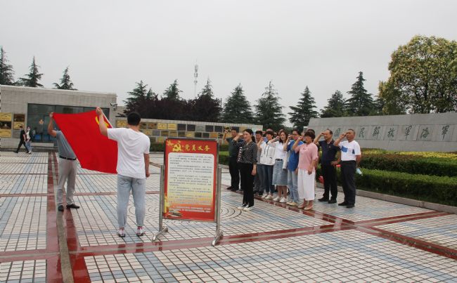 »î¶¯ÏÖ³¡£¬Ö§²¿È«Ìåµ³Ô±ÔÚ¼ÍÄî¹ÝÍâ¹ã³¡Ïòµ³ÆìׯÑÏÐûÊÄ