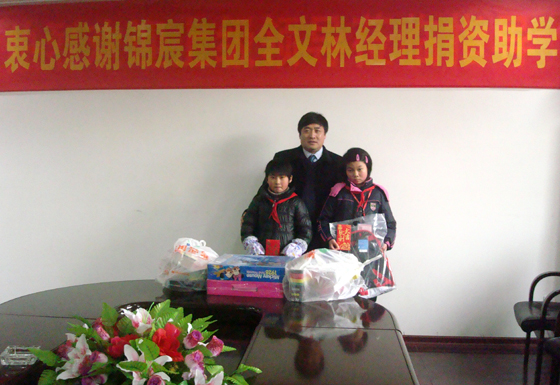集团山东临时党支部书记、山东HJC黄金城平台房地产开发有限公司副董事长全文林同志积极响应号召,在党委办主任谢建平同志的陪同下,来到泰州民兴实验中学看望孤儿葛亚萍和李雨婷两位同学,给她们带来了书包等学习用品和慰问金。