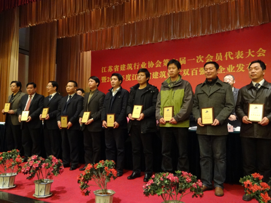 会上,我公司被评为“2011年度江苏省建筑业竞争力百强企业”,集团公司董事长李焕军同志荣获“2011年度江苏省建筑业优秀企业家”称号。