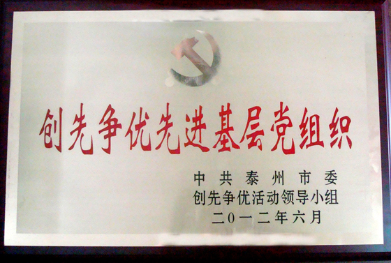 | 集团公司党委被评为泰州市创先争优先进基层党组织 |