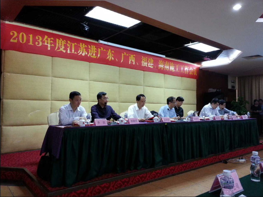 425, 省住建厅在珠海召开“2013年度江苏进广东、广西、福建、海南施工工作会议”,对2013年度江苏进广东、广西、福建、海南施工先进企业及个人予以表扬通报。集团公司被评为“江苏进广东、广西、福建、海南施工先进企业”,广东分公司孔辉同志被评为“优秀建造师”。