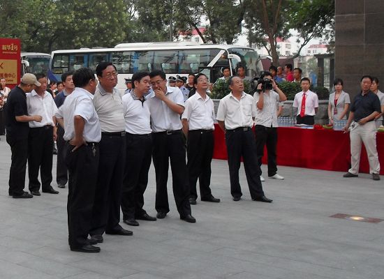 200979下午7:30,唐山市市长陈国鹰、市政协主席张国栋等领导莅临君瑞国际花园(新华1号)项目部指导、视察工程建设情况。