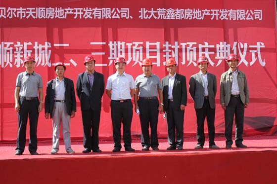 8月26日,集团公司承建的天顺新城二、三期工程正式封顶。呼伦贝尔市市委、海拉尔区区委及市有关部门领导,天顺集团、北大荒集团、北大荒鑫都地产主要领导,集团公司董事长李焕军出席封顶仪式。
